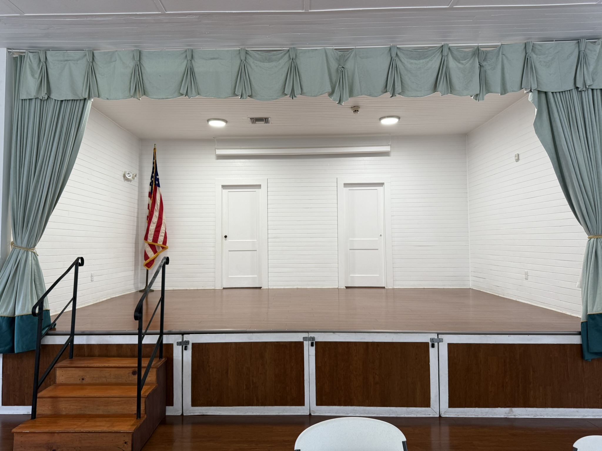 In addition to the main floor, there is a stage, two bathrooms (one is handicapped accessible), and a kitchen with refrigerator, microwave and coffee pot. No stove top is provided and cooking is not permitted in the clubhouse by City ordinance. A BBQ grill is allowed outside the building. Please Note: There is no freezer inside the clubhouse. If you need ice for drinks, you will need to bring a cooler for the ice. A handicapped accessible ramp is available on the west side of the building.